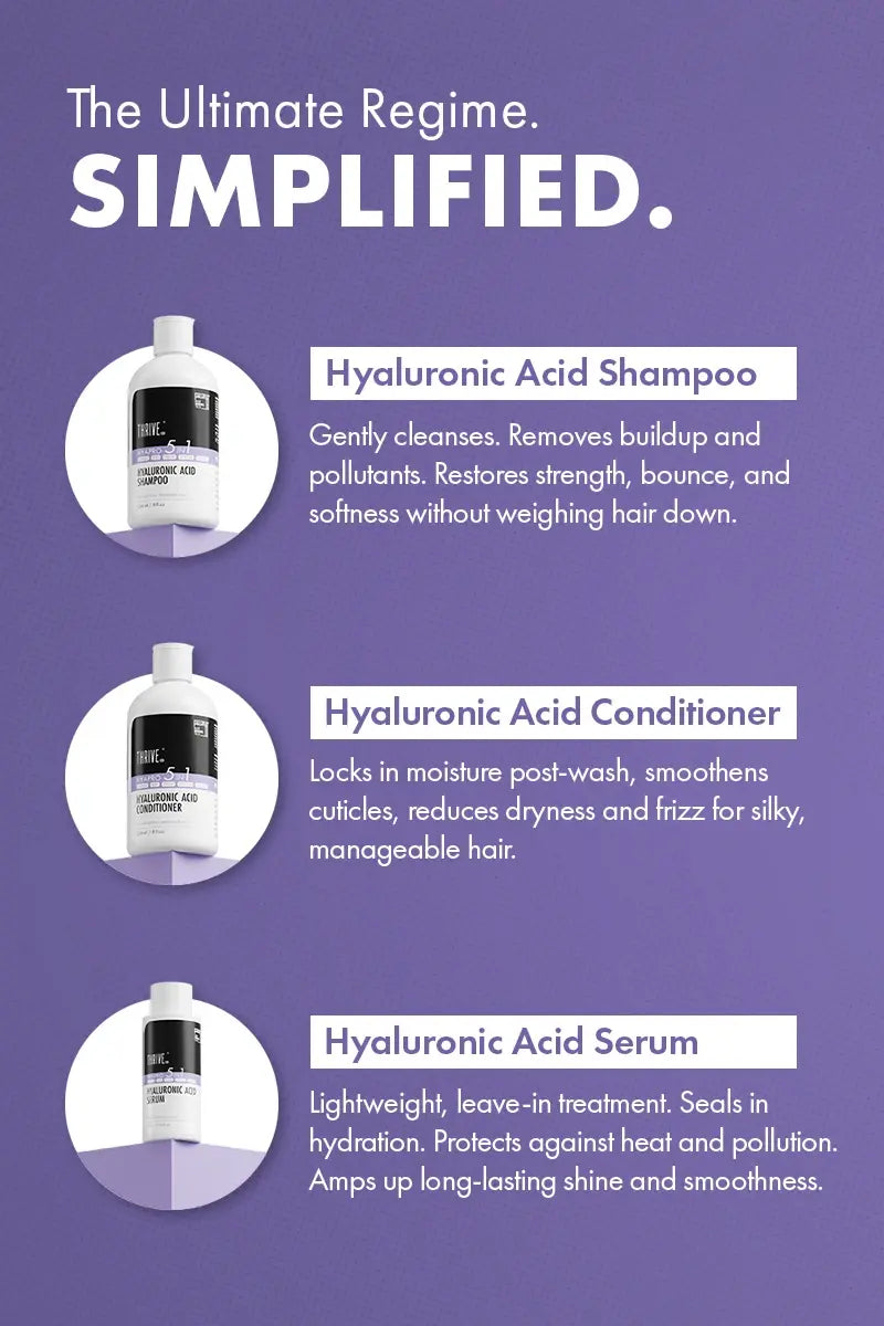 Visible improvement in hair smoothness, bounce, and shine. Consistent use of the Hyaluronic Acid Shampoo, Conditioner, and Serum leaves hair deeply hydrated, frizz-free, and noticeably healthier