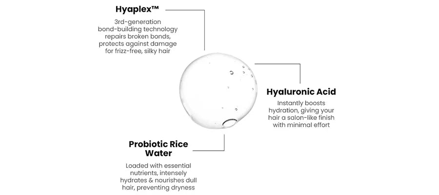 ADVANCED INGREDIENTS: Hyaluronic Acid gives an instant boost of hydration and nourishment, giving your hair a salon-like finish with minimal effort. Loaded with essential nutrients, Probiotic Rice Water intensely hydrates & nourishes dull hair, helping to maintain moisture balance and prevent dryness.