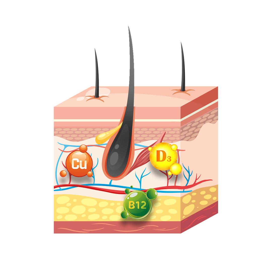 Essential for melanin synthesis via the tyrosinase enzyme, it helps maintain natural hair color and prevents premature greying.