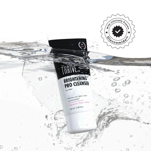 ADVANCED BRIGHTENING ACTION: Men's skin need more. Formulated with Vitamin C, Kojic Acid & Glutathione, ThriveCo Pro Brightening Cleanser is specifically designed for men facial cleansing requirements. It instantly brightens, deeply cleanses, lightens dark spots, removes dirt, grim, sebum & impurities from the face. With its potention action on pigmentation & uneven skin tone, its suitable for all skin types.
