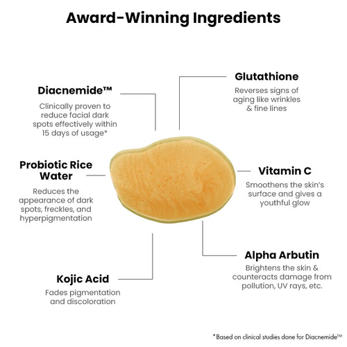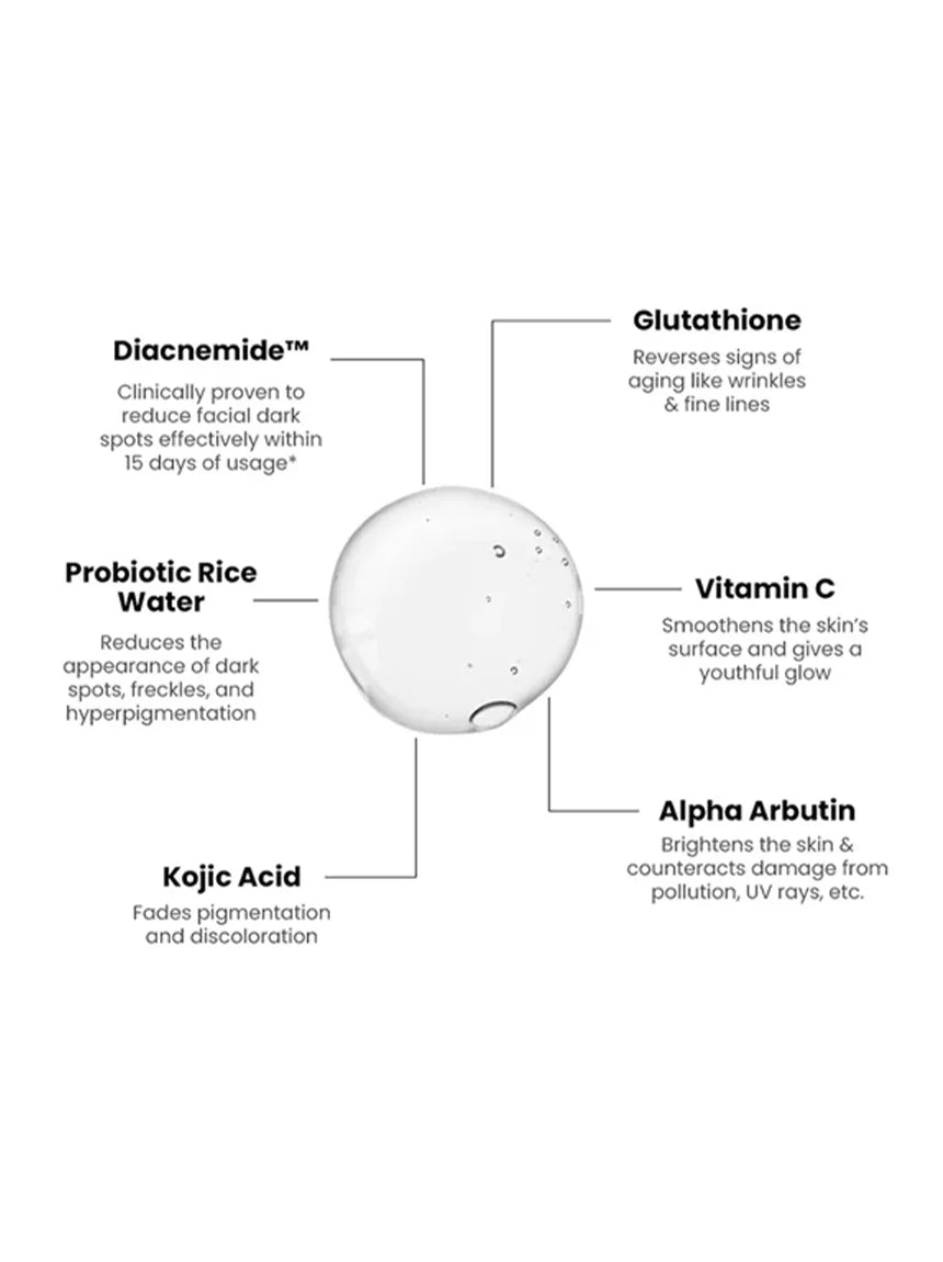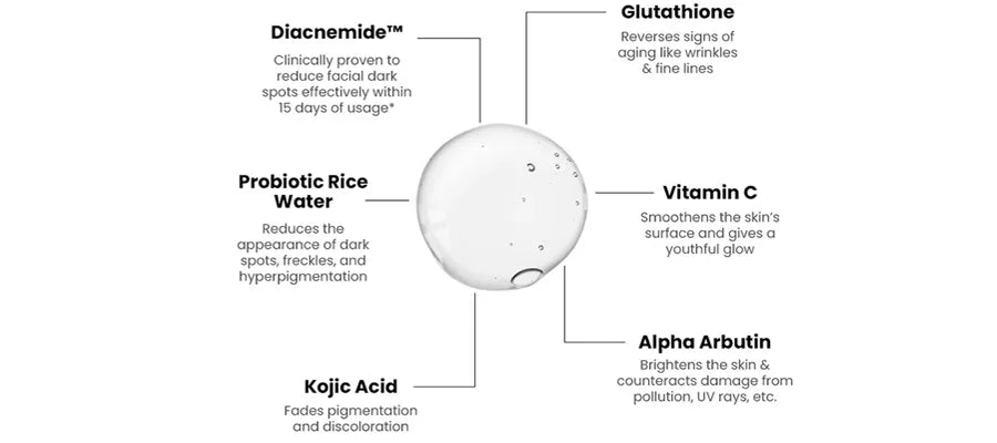 PROVEN INGREDIENTS: Unlike regular cleansers, it includes ThriveCo's proprietary ingredient Diacnemide™, clinically proven to reduce facial dark spots effectively within 15 days of usage*. Probiotic Rice Water improves skin texture by reducing the appearance of dark spots, freckles, and hyperpigmentation. Kojic Acid brightens the skin and counteracts damage from pollution, UV rays, and other harmful environmental factors. Glutathione reverses signs of aging like wrinkles & fine lines. Vit C & Alpha Arbutin improve skin elasticity, fade dark spots and diminish hyperpigmentation for a more youthful and luminous complexion. *Based on clinical studies done for Diacnemide™.