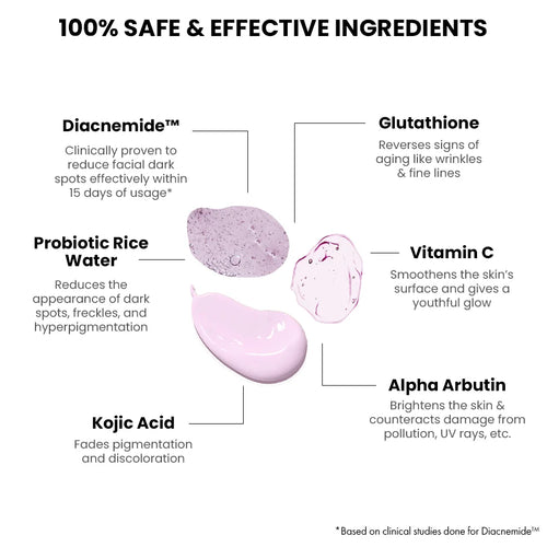 ThriveCo's proprietary ingredient Diacnemide™ is clinically proven to reduce facial dark spots & acne effectively within 15 days of usage.