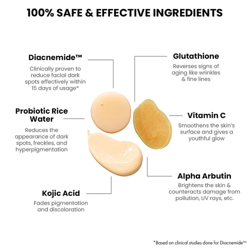 ThriveCo's proprietary ingredient Diacnemide™ is clinically proven to reduce facial dark spots & acne effectively within 15 days of usage.