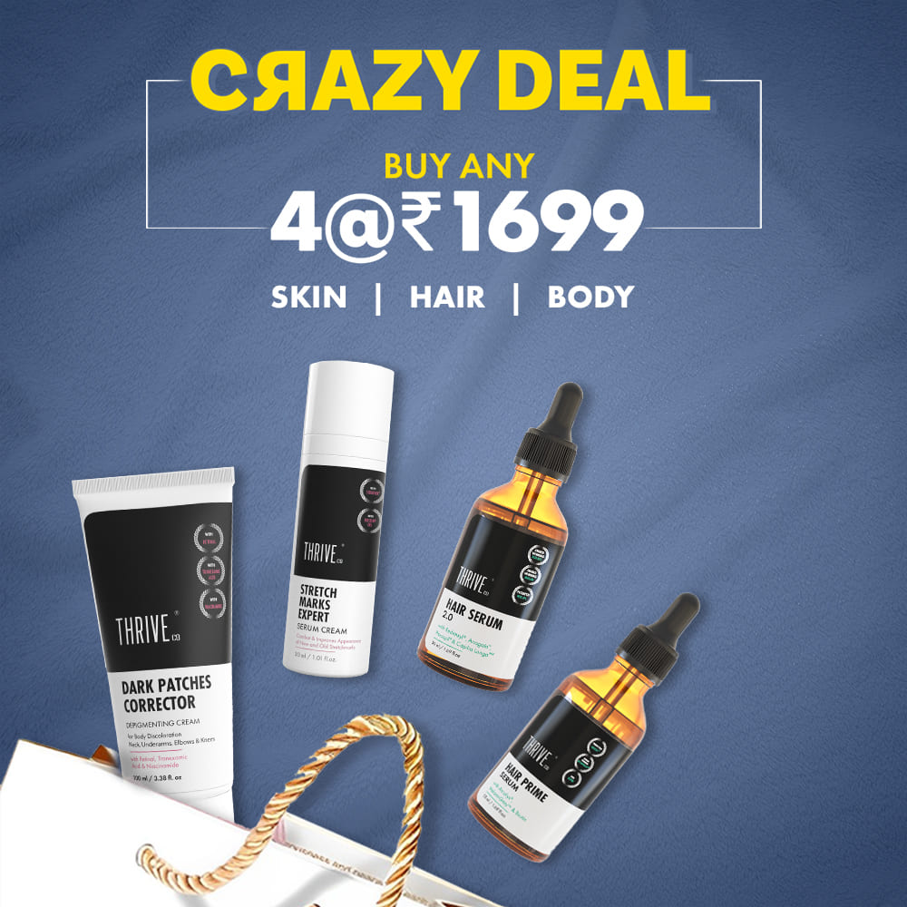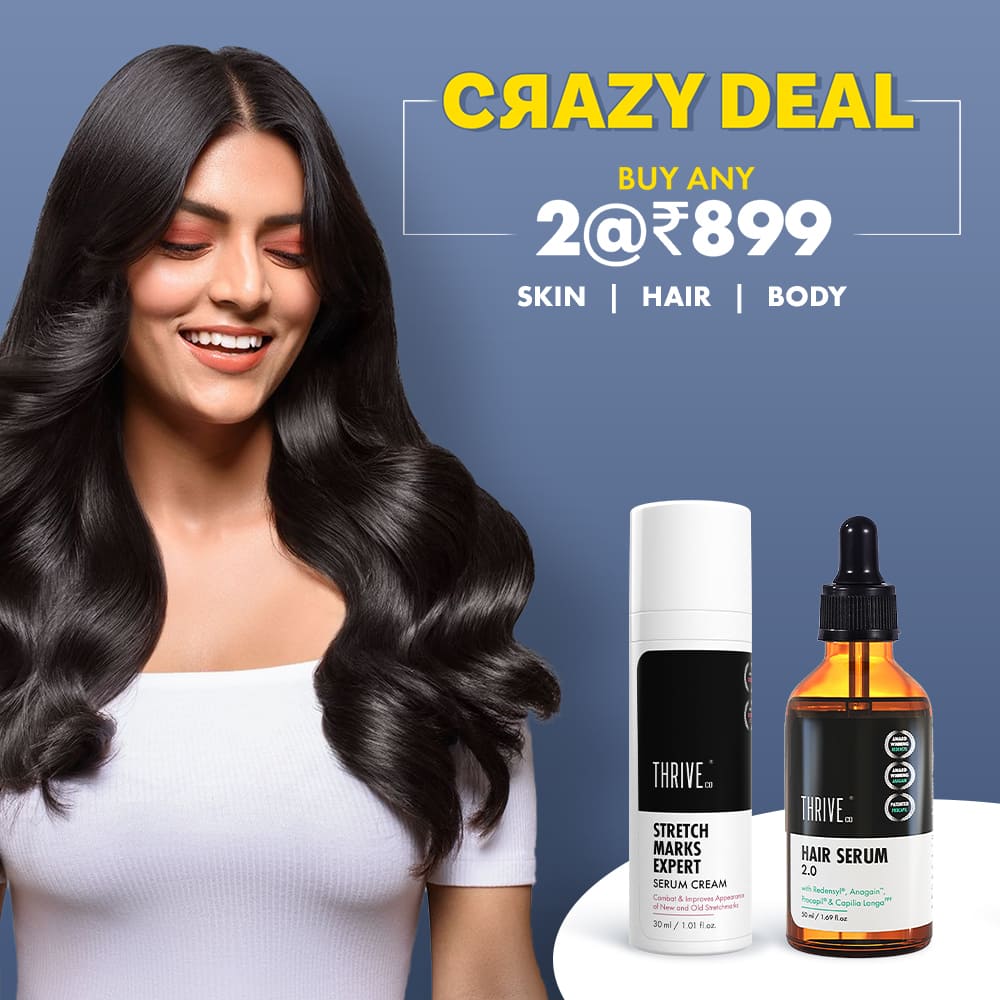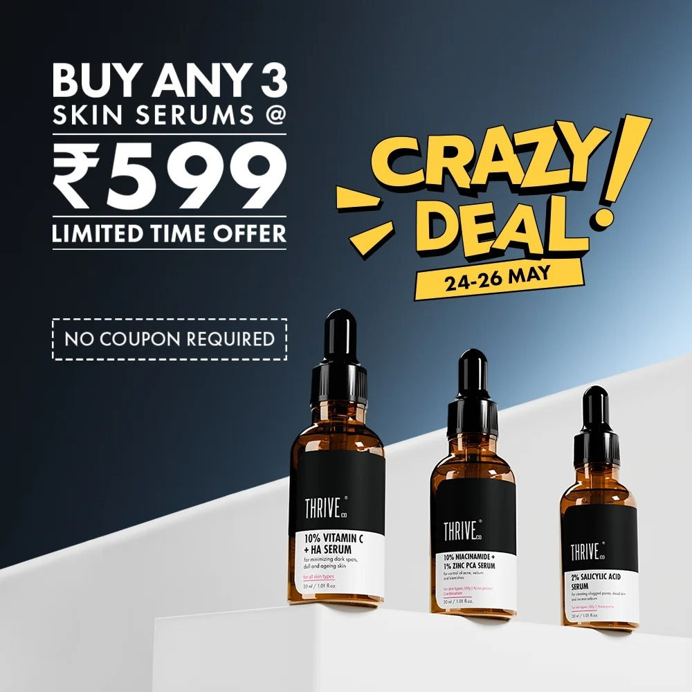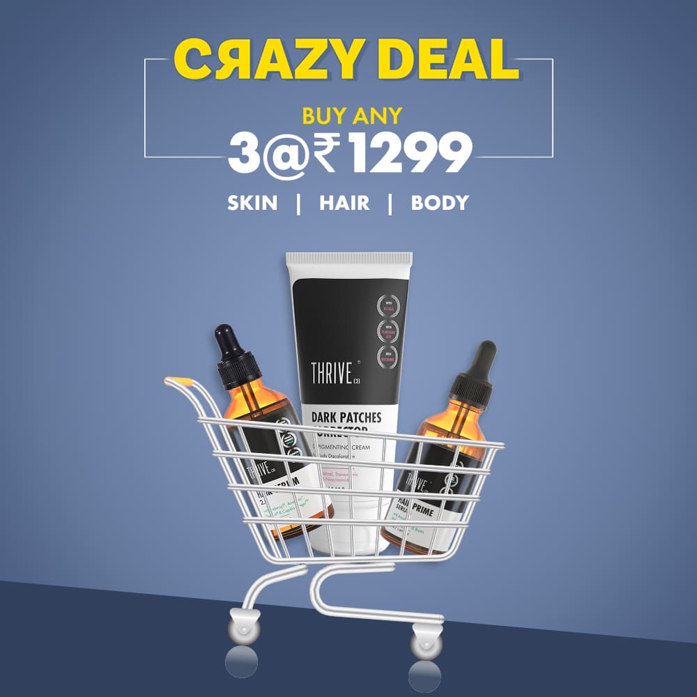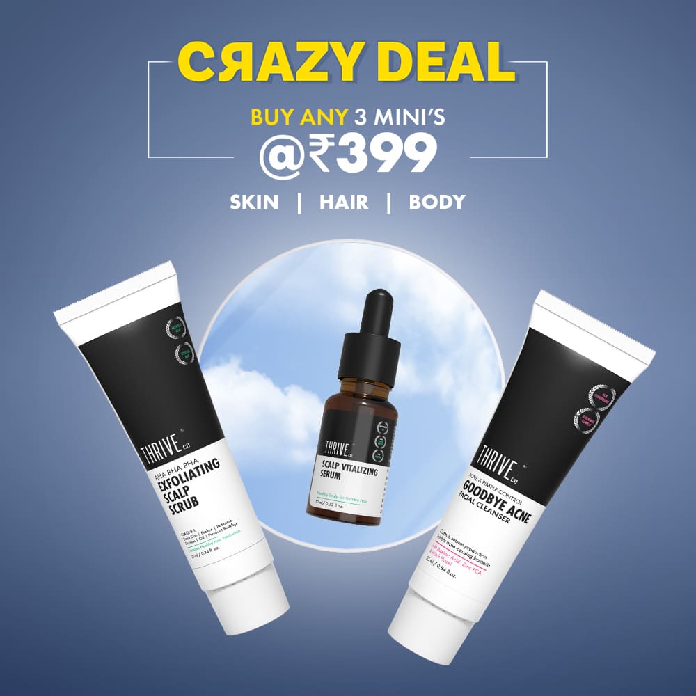Triple the fun! Give yourself the care you deserve! Discover an exciting range of ThriveCo's selected skincare and hair care must-haves. Choose any 3 products for only Rs. 999.