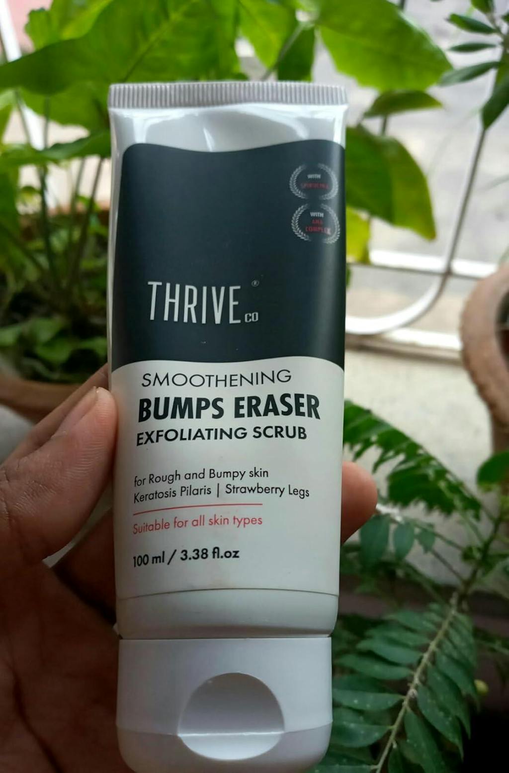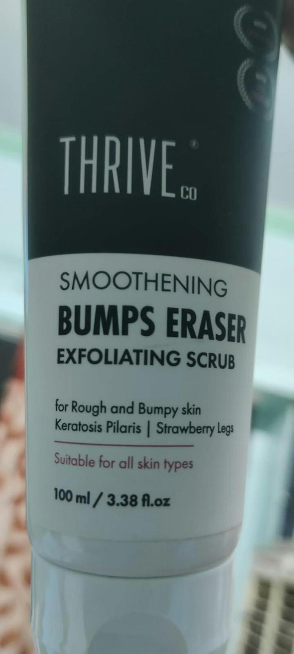 ThriveCo Bumps Eraser Exfoliating Scrub has ingredients like Spirulina, Glycolic acid & Lactic acid that act as chemical exfoliants and remove the outermost layer of the skin cells making it soft & smooth.