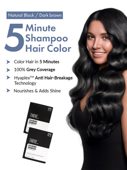 ThriveCo Coloring Shampoo transforms your hair color in just 5 minutes, providing vibrant, salon-like results quickly and efficiently.