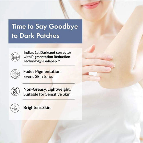 - This formulation is a non-sticky creamy formula that works on dark patches by exfoliating dark and hard skin, promoting overall skin cell turnover and downregulating melanocytes to skin giving brighter skin. Visible results in 30 days.