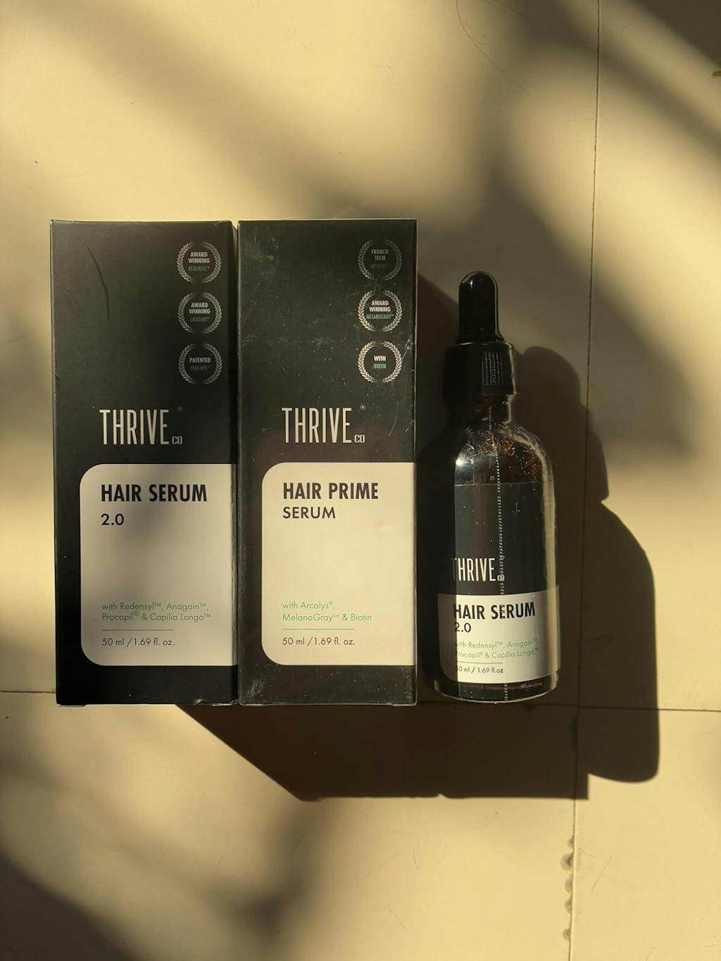 ThriveCo Hair Serum 2.0 stands apart because it’s a clinically proven, science-backed formula with results published in British medical journal and supported by a proprietary blend that’s filed for patent. In clinical studies, the serum delivered exceptional improvements: 1.5× increase in the hair growth rate* 34% increase in Hair Thickness* 40% boost in Hair Density* 42% reduction in Hair Fall* Anagen:Telogen ratio shift from 57:43 to a healthier 80:20* (meaning significantly more follicles in the active growth phase) With over 6M+ bottles sold, this combination of validated science, proprietary innovation, and visible transformation is what makes it one of India’s most advanced and high-performing hair growth serums.