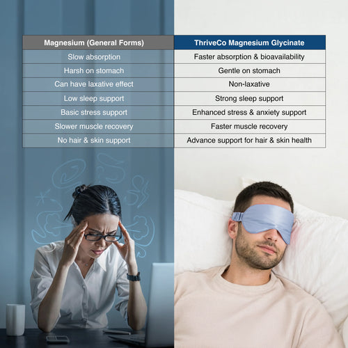 ThriveCo Magnesium Glycinate is a highly bioavailable, chelated form of magnesium designed for superior absorption without causing digestive discomfort. Formulated to support modern lifestyles, this advanced nutraceutical helps address common magnesium deficiency - a widespread yet often overlooked concern.
