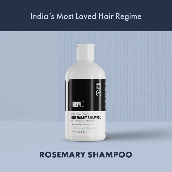 Visibly fuller, shinier hair with ThriveCo’s Rosemary Range - your go-to solution for scalp care and hair revival that targets hair thinning, breakage, and premature greying, delivering a healthier, more voluminous look over time.