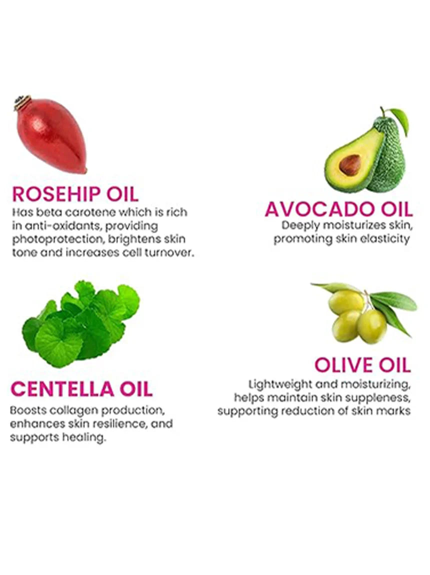 Cyclopentasiloxane, Dimethiconol, Isododecane, Cocos Nucifera Oil , Madhuca Longifolia Seed Oil, Isopropyl Myristate, Isoamyl Laurate, Rosa Rubiginosa Seed Oil, Persea Gratissima Oil, Squalane, Tocopheryl Acetate, Centella Asiatica Extract, Helianthus Annuus Seed Oil, Ascorbyl Palmitate, Perfume
