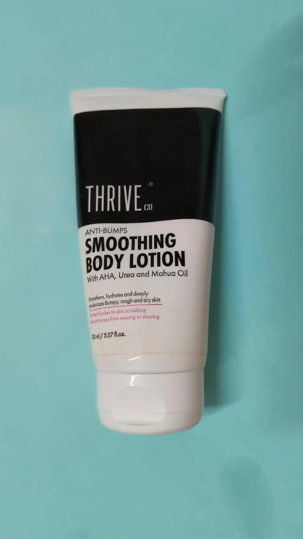 - BUMP-FREE SKIN: ThriveCo Smoothing Body Lotion is an anti-bump whole-body moisturizing formula, that gently exfoliates dry, rough & bumpy skin. Infused with Mahua oil, it effectively soothes itchy and irritated skin, and reduces the appearance of Keratosis Pilaris (also known as Strawberry Skin) for an effortlessly smooth look and feel.